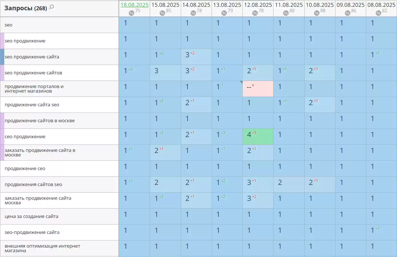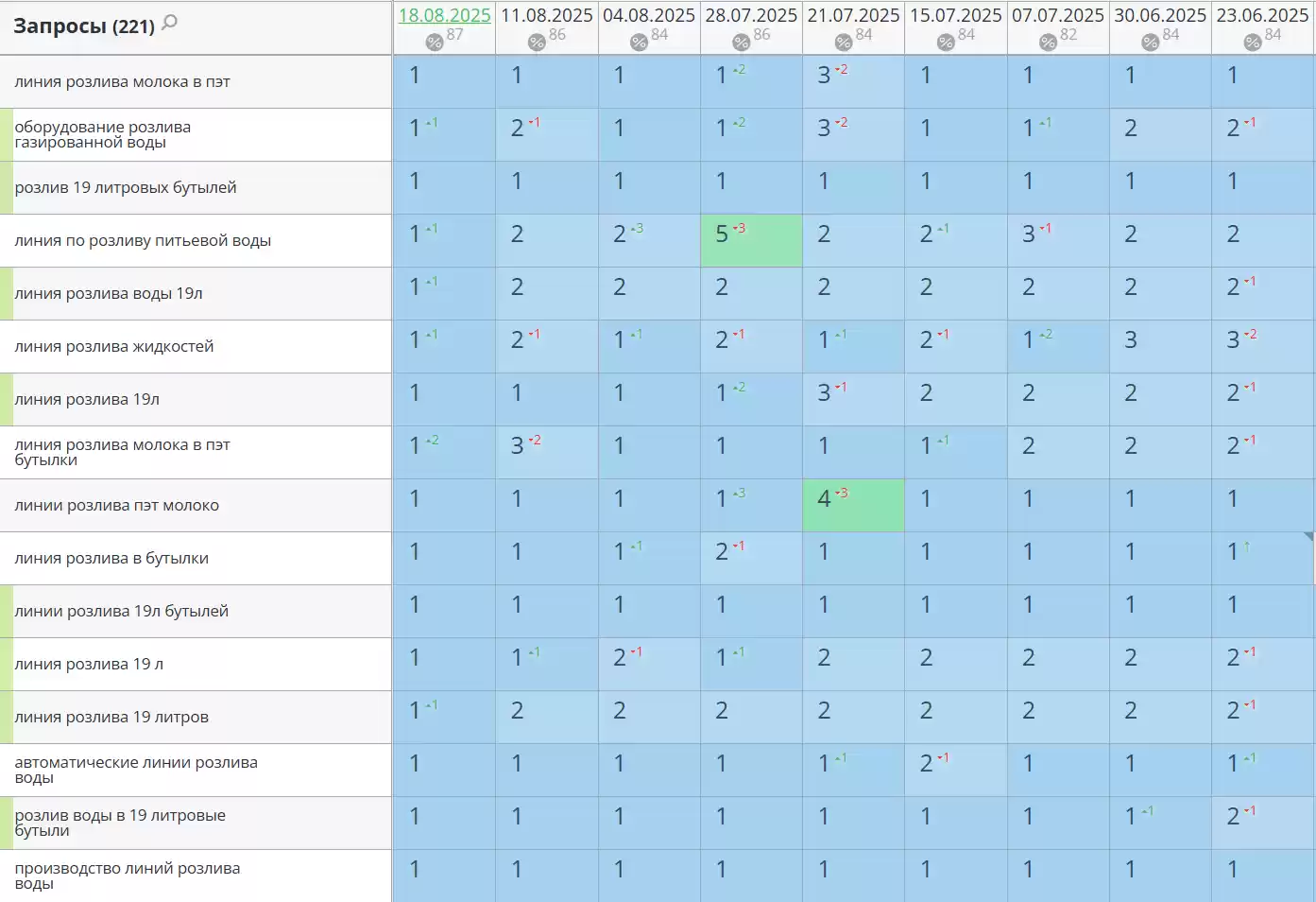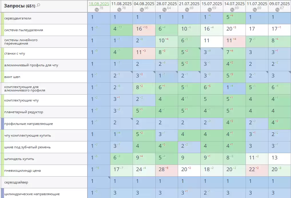 - Позиции по запросам